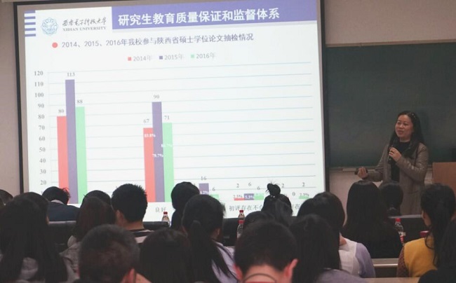 研讨会上,肖嵩教授就我校研究生教育质量保证和监督体系的建设情况,同与会师生进行了交流。她通过大量数据和实例分析了我国研究生培养现状,解读了国家关于深化研究生教育改革的有关政策,提出了当前我校研究生培养所面临的一些问题。在此基础上,她深入介绍了我校研究生教育质量保证和监督体系框架,对我校学位授予标准和学位授予质量保证体系的相关规定进行了重点阐述。她强调,建立与完善研究生教育质量保证和监督体系,是学校研究生教育综合改革的重要内容之一,365英国上市官方网站通过研讨会的方式推进此项工作具有重要的创新意义。