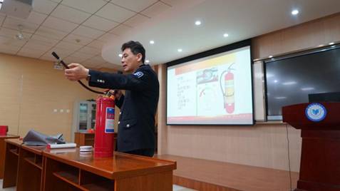 随后,晁教官通过视频短片、数据分析、图文讲解等方式,以实际案例为依据,生动细致地向大家普及了消防知识,向在场师生讲述了消防知识缺失、应急技能较弱、消防工具不完善等情况下发生意外引起的惨痛事例,警示大家提高消防安全意识,保护自身及公共财产安全。从“防火”、“灭火”、“逃生”、“自救”四个方面详细介绍了火灾的形成过程、自救逃生的方法以及灭火器的种类和操作作方法等一系列消防安全知识。此外,他还积极与同学们进行互动,进一步加深师生们对消防安全的重视程度。晁教官谈到,在日常生活中,大家切忌存有轻视侥幸心理,希望广大师生积极学习消防知识,做好火灾预防工作,最大程度减少安全事故的发生。
