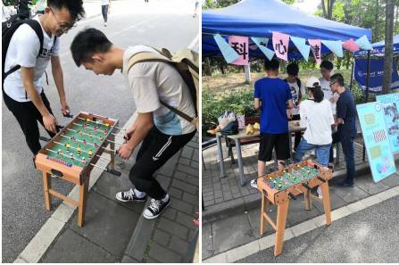为了让同学们释放压力、缓解情绪,以积极饱满的热情投身于生活、学习中,我们开展了各式各样新鲜有趣的游戏。“德国心脏病”紧张刺激的游戏体验和胜利后的欢呼都给我们带来不一样的乐趣;五子棋锻炼了我们的思考能力,促进我们的身心健康;桌式足球也为我们解压……游戏之余,我们会送上我们的小礼品,用不一样的方式给同学们解压,让他们认识到心理健康的重要性。