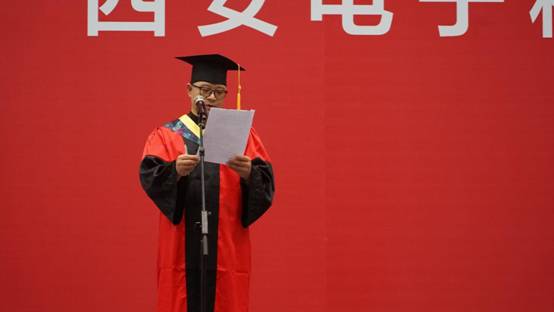 首先,副校长蒋舜浩代表学校向全体毕业生表示衷心的祝贺!期望全体毕业生牢记西电许党许国、砥砺奋进的基因底色,秉承西电人的优秀品质,投身行业发展,把个人理想同伟大的中国梦结合起来,砥砺前行,积极实现自己的人生理想和价值。
