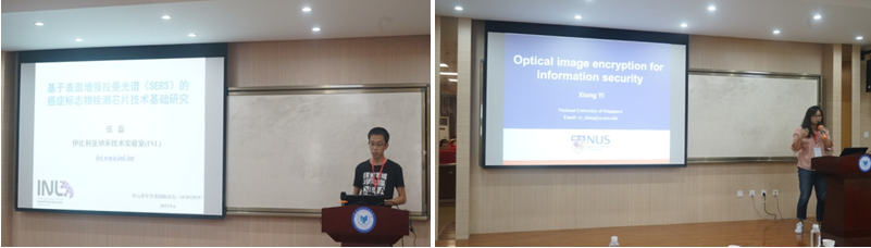 接着,伍磊博士做了题为《基于表面增强拉曼光谱的癌症标志物检测芯片技术基础研究》的学术报告,拉开本次论坛会的序幕,熊怡、施春林、李蓓、黄智勤、曹启晨、张建波、郑梅珍7位海外学者紧随其后逐次为学院师生做了精彩的学术报告,报告涉及图像加密、肿瘤治疗、数据分析等多个领域。