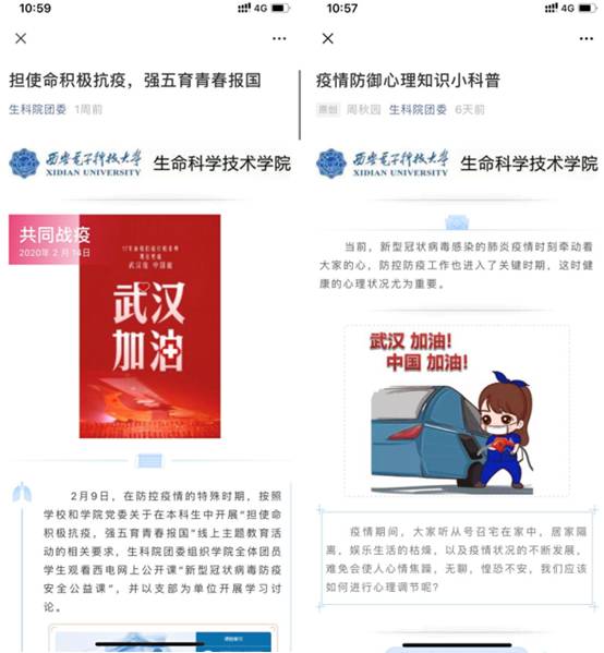 加强疫情防控教育和相关学习,稳定学生心态。学院团委开通QQ号每天及时转发疫情相关消息,并结合专业特色开展疫情科普,让大家在了解疫情的时候也对专业和使命有了更深思考。学院及时整理和推送疫情期间的心理防护小贴士,开展线上心理咨询热线,对有学业压力、就业挑战和经济困难的同学主动关心,确保每个人不掉队。同时,组织学生观看“新冠病毒防疫安全公益课”,举办为武汉加油的线上支持活动,得到学生的积极响应。