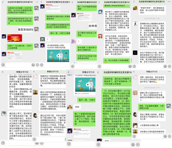 为深入贯彻落实习近平总书记对防控疫情的重要指示和讲话精神,号召全体师生“众志成城,共渡时艰”凝聚力量,做好“停课不停学”相关工作,加强疫情防控宣传教育,365英国上市官方网站先进医学影像研究生党支部积极组织和推动支部全体党员进行线上学习,同时积极组织线上支部活动。
