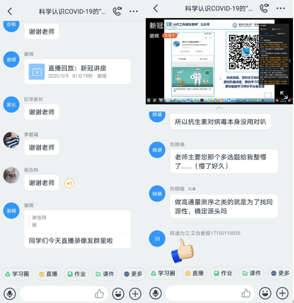讲座最后,多位同学与谢晖老师进行了互动,就病毒防控等专业问题进行了热烈讨论。