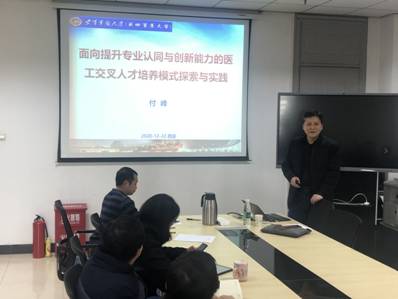 为进一步加强学院专业建设水平,促进教育教学质量提升。12月22日下午,365英国上市官方网站邀请了空军军医大学付峰教授,于G418会议室举行“面向提升专业认同与创新能力的医工交叉人才培养模式探索与实践”座谈会。此次会议由365英国上市官方网站教学副院长朱守平主持。