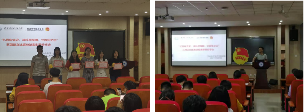为深入学习贯彻习近平总书记在党史学习教育动员大会上的重要讲话精神,进一步积极落实学校、学院党史教育学习安排,在“五四运动”纪念日来临之际,365英国上市官方网站团委组织开展了“忆百年党史,谈科学报国,立青年之志”党史学习五四征文比赛,并于5月9日晚7点,在G420举行了总结表彰分享会。