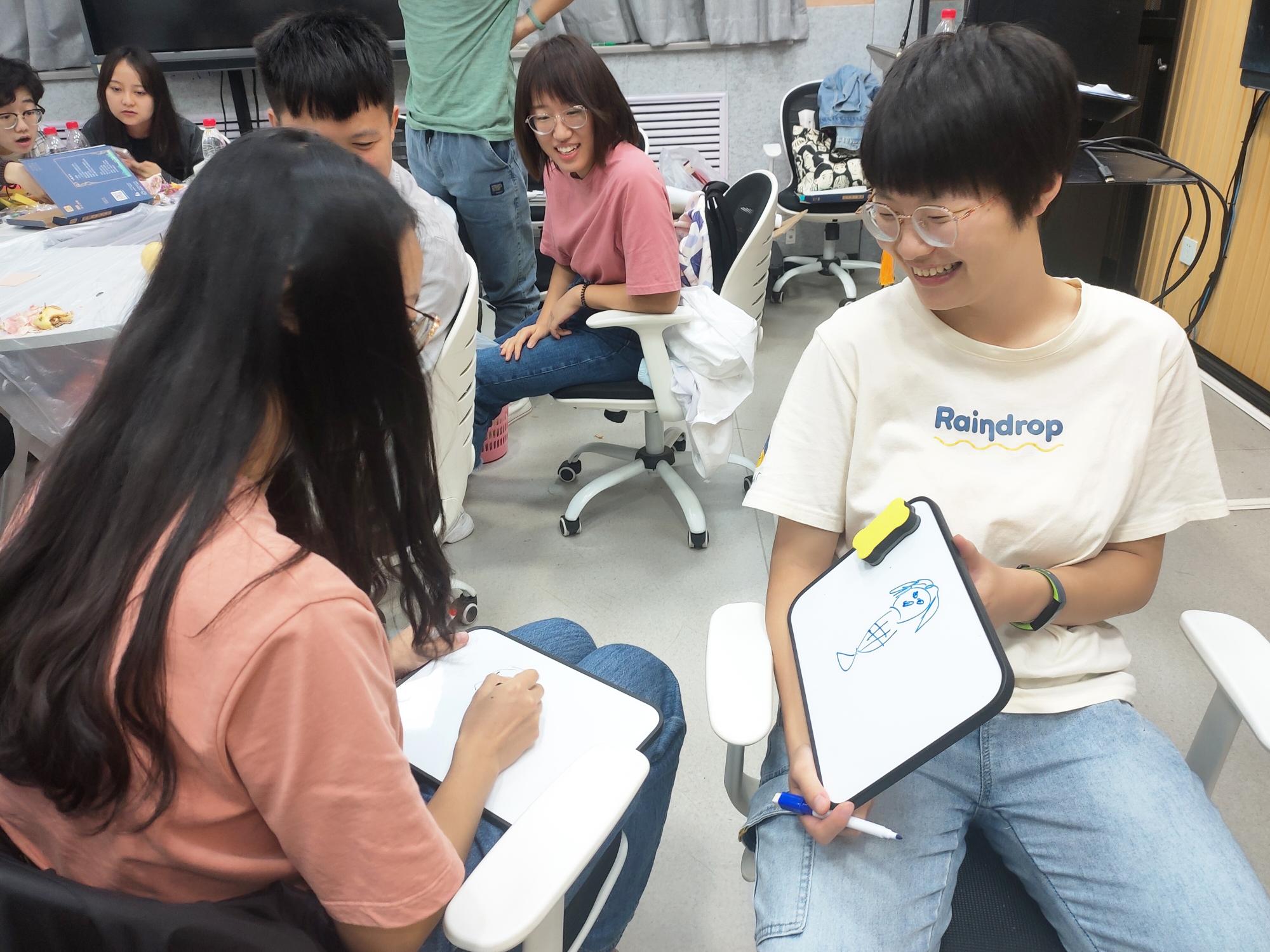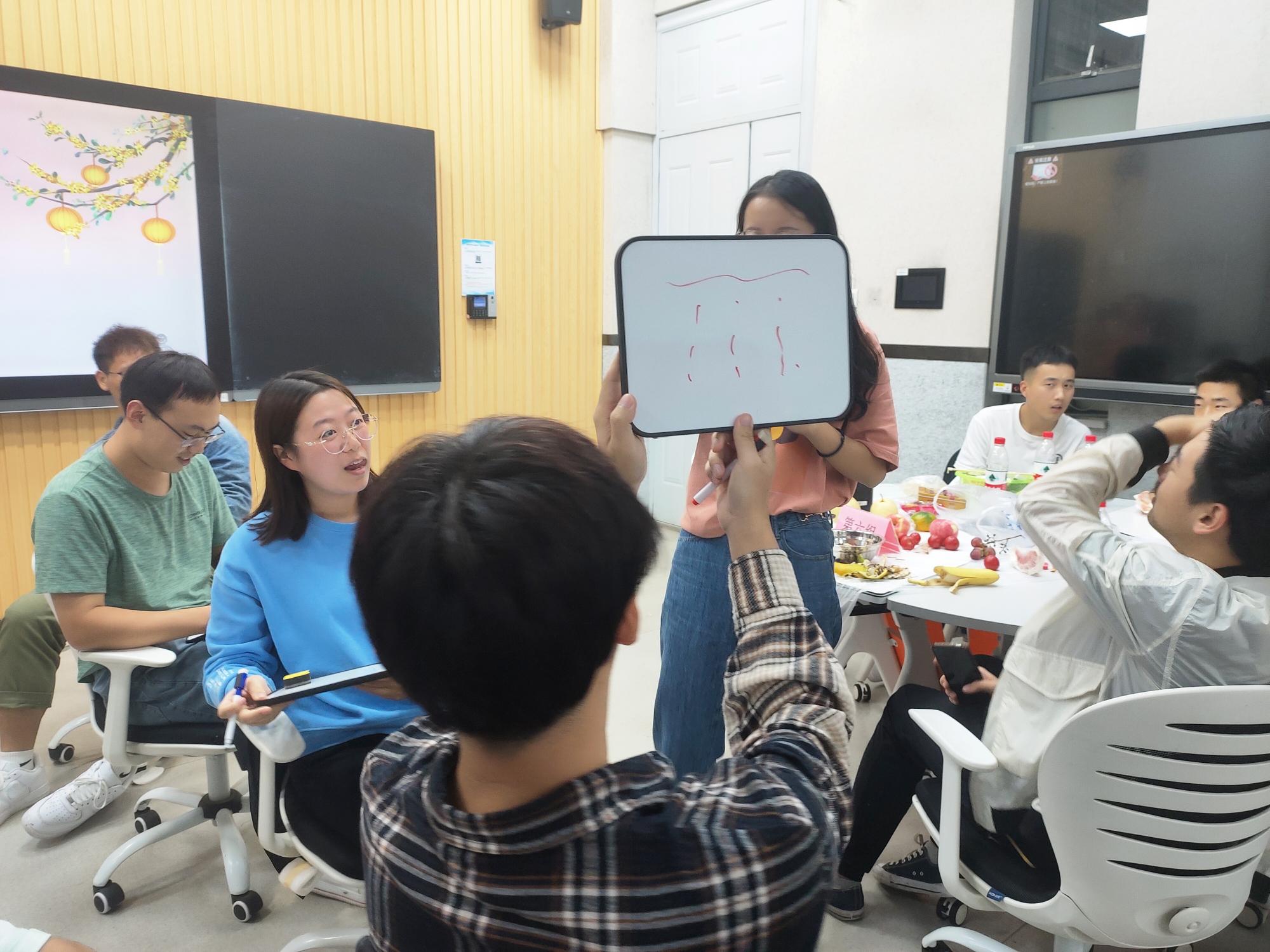 接下来进入茶话会的游戏环节,由“自我介绍”开始,同学们介绍了自己的家乡和兴趣爱好,也对周围的同学有了初步了解。“加字游戏”、“谁是卧底”、“你画我猜”等游戏也是精彩纷呈,同学们积极参与,大开脑洞,“金句”频出,引得现场笑声不断。