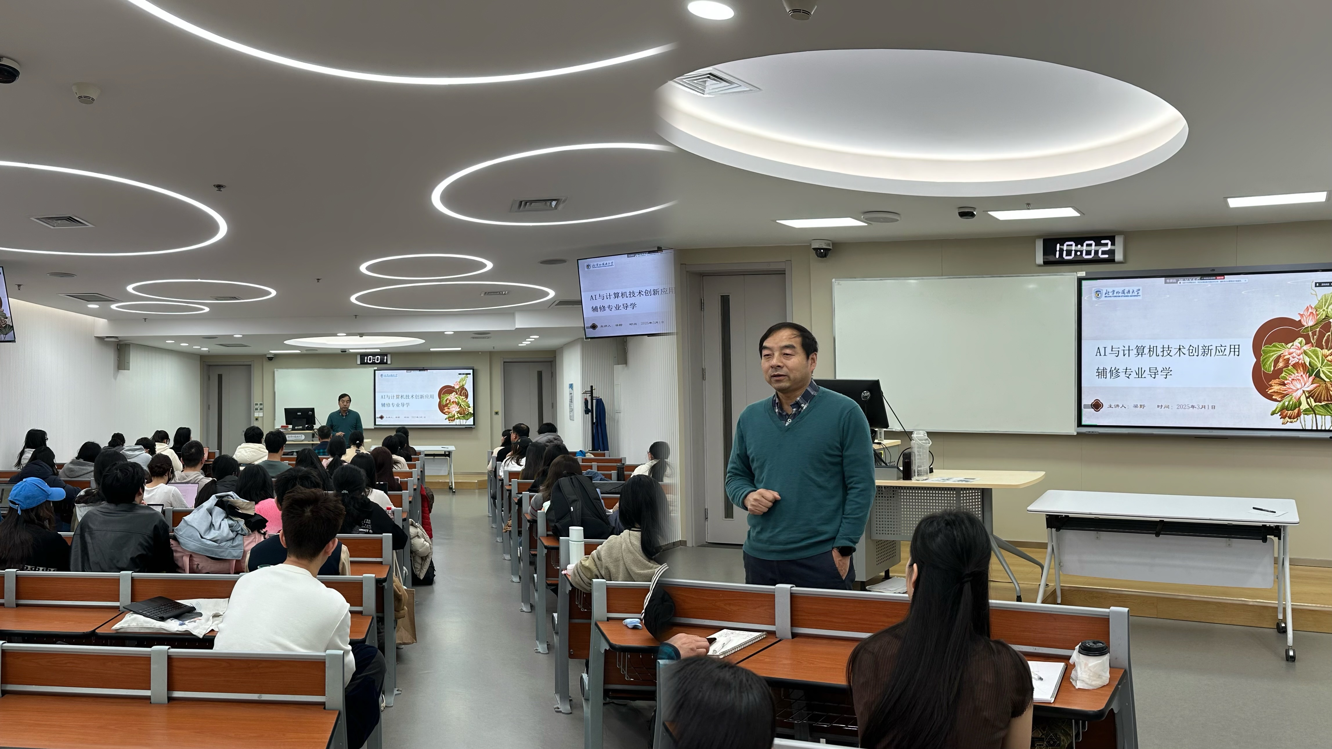 院长张继红在致辞中对同学们选择辅修微专业表示热烈欢迎。他提到,当前人工智能技术正以前所未有的速度发展,深刻改变着各行各业,通过计算机科学与技术辅修或者微专业的学习,同学们能够打破学科壁垒,掌握前沿技术,成为兼具人文素养与技术能力的复合型人才,在交叉领域中找到独特的竞争优势。他希望同学们珍惜这一宝贵的学习机会,勇于挑战自我,在人工智能时代中抢占先机,为未来的职业发展开辟更广阔的空间。