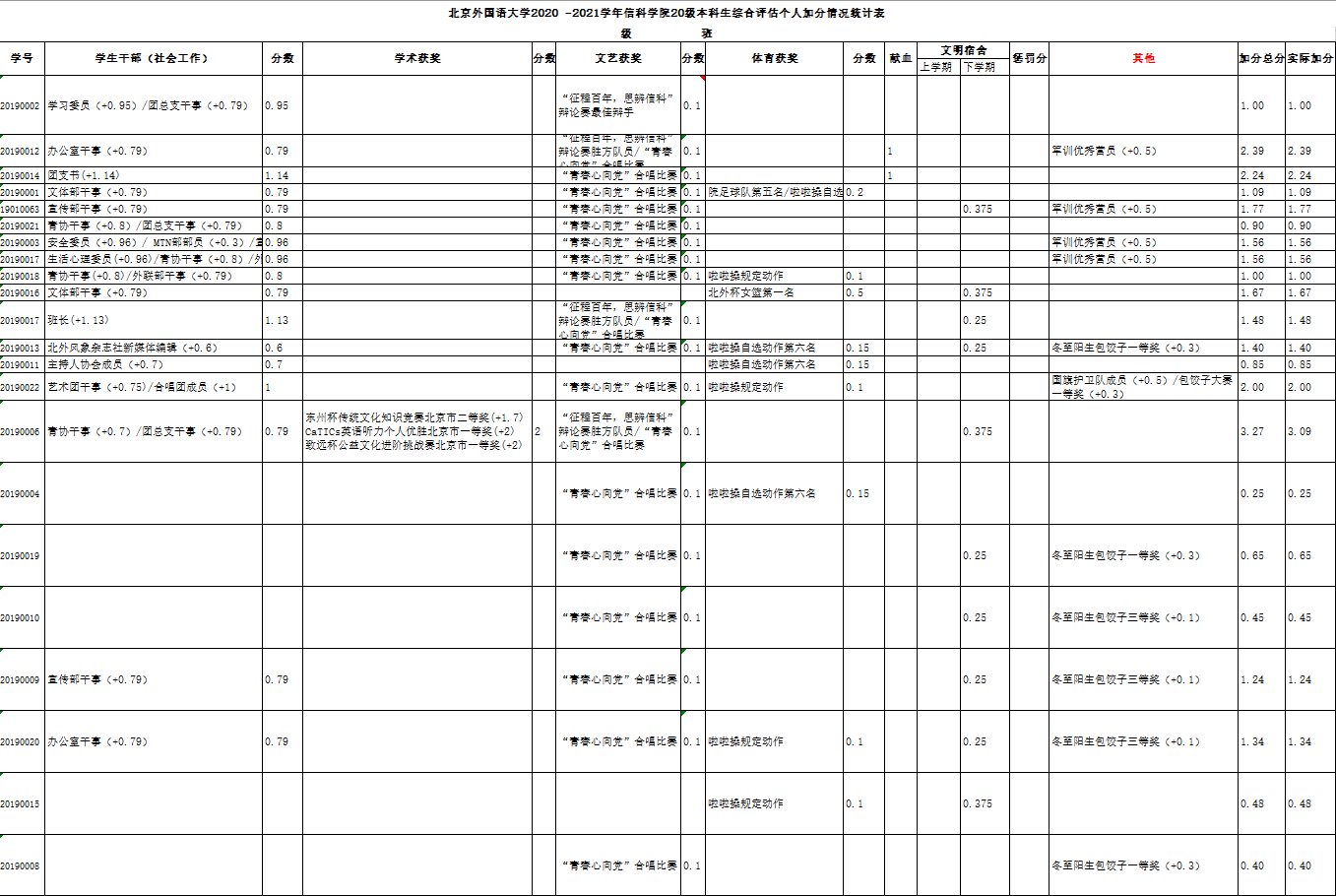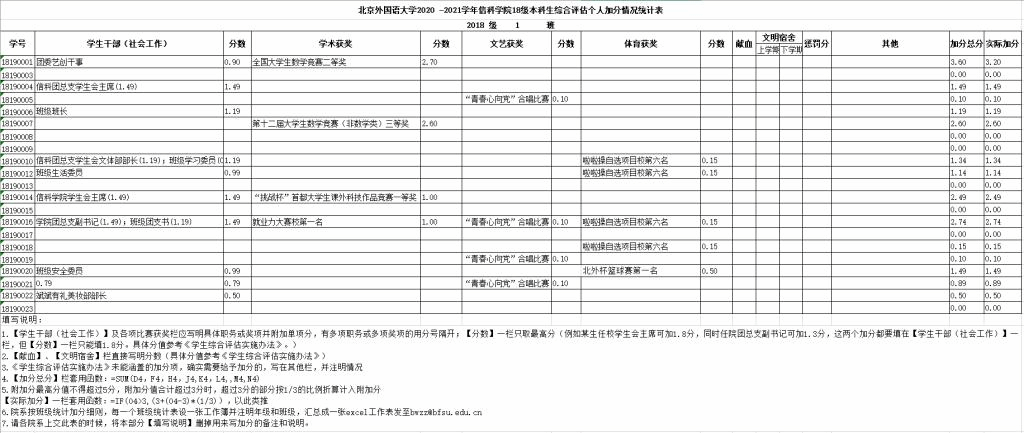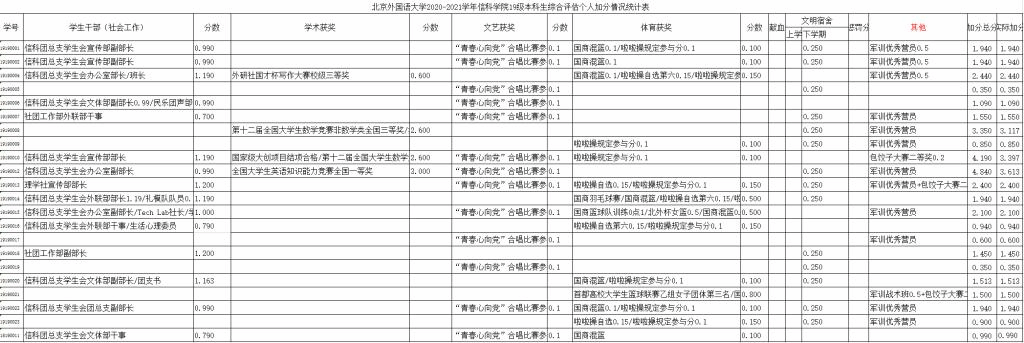 北外beat365唯一官网2020-2021学年本科生综合评估个人加分名单公示